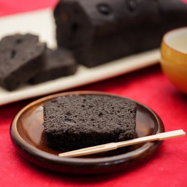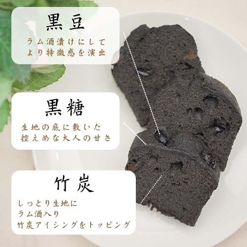 黒豆・黒糖・竹炭・ブラックココアで黒のインパクトを出し、三温糖やラム酒を入れて甘さ控えめに仕上げました。